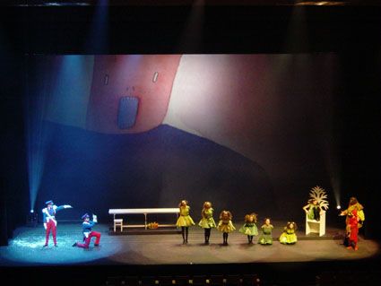 ... un crescendo où éclate toute la puissance évocatrice d'un spectacle à la forme un peu particulière puisqu'il mêle jeu d'acteurs, chansons, musique, éclairages, et ces fameuses aquarelles qui, évidemment, font rêver par leur poésie simple... Bref, une délicieuse friandise acidulée, bien emballée dans une Grande Aula en habits de fête.