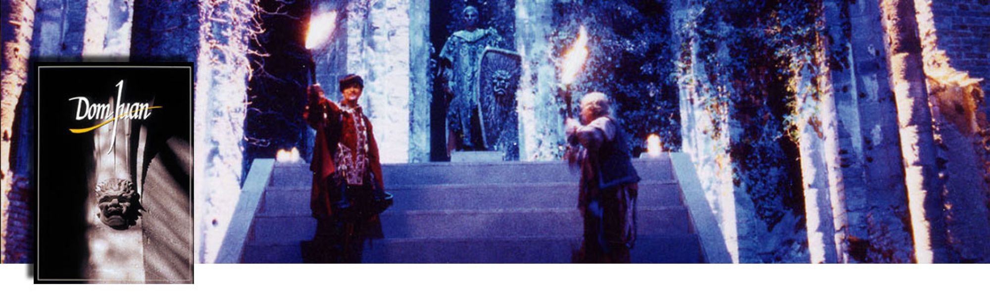 ... Pour sa première mise en scène à Villers-la-Ville, Armand Delcampe -fin connaisseur du théâtre en plein air- a choisi le rapport proche avec le public, le dépouillement intelligent de la scénographie pour laisser parler les impressionnantes ruines de l'abbaye. Eclairée de grands bougeoirs, l'abbatiale devient la surprenante tombe du Commandeur et se prête à merveille aux tons surnaturels de l'aventure. Quant à Thierry Bosquet, il a imaginé des costumes tantôt chatoyants tantôt misérables, selon le monde auquel les personnages appartiennent. Mais la mise en scène limpide et lumineuse d'Armand Delcampe ne posséderait pas cette assise si les comédiens ne payaient pas de leur talent...