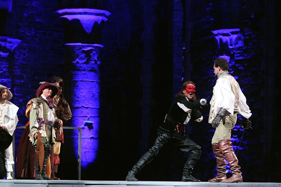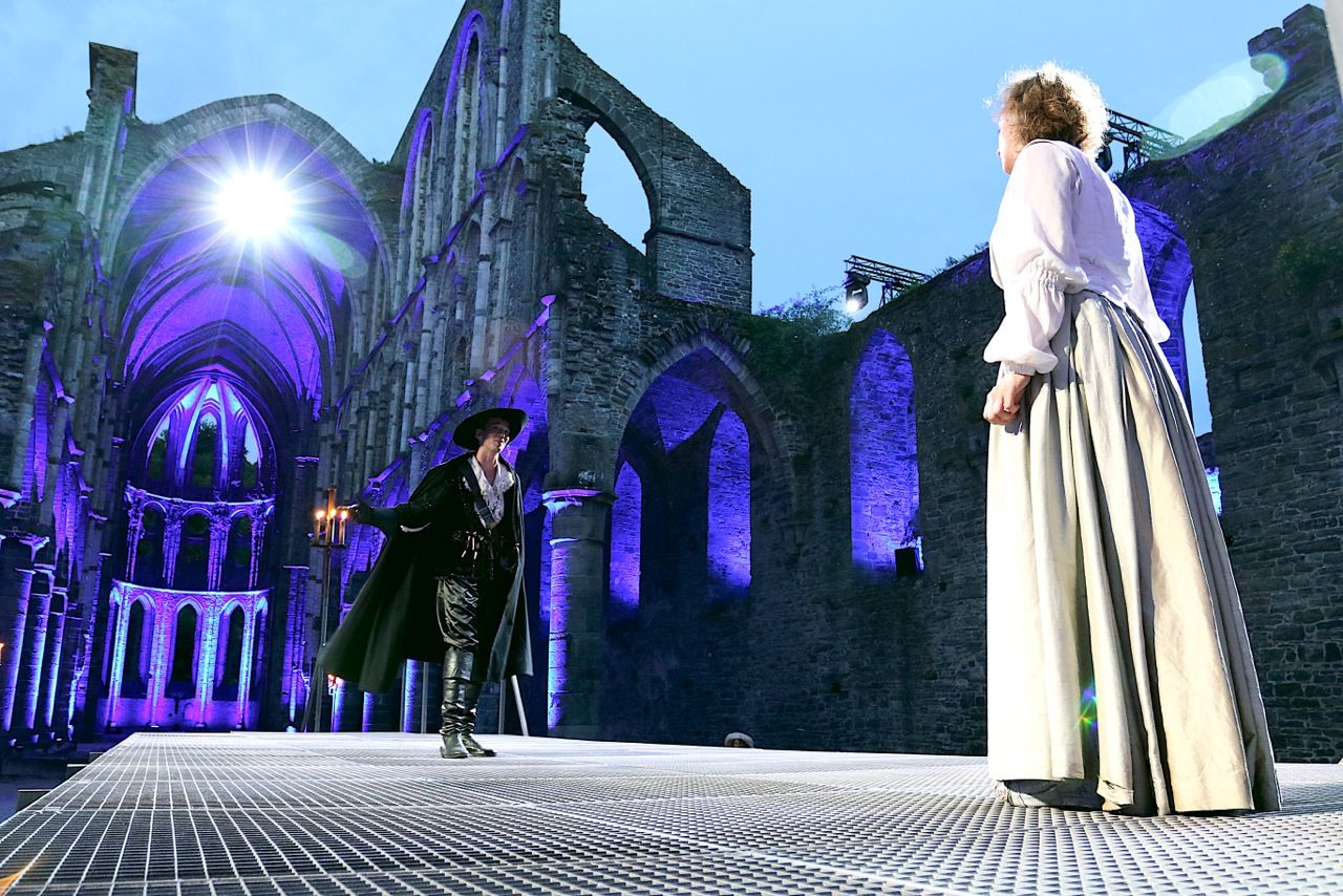 (…) Il n’y a pas plus cohérent que les ruines de l’abbaye de Villers pour accueillir ce spectacle, monument du genre de cape et d’épée, qui se déroule au XVIIe siècle sous le règne de Louis XIII. (…) La pièce riche en rebondissements embarque les spectateurs dans une aventure joyeuse et drôle pendant plus de deux heures. Le spectacle permet au public de faire une rapide visite nocturne de l’abbaye, brillamment illuminée par le jeu des lumières. Le premier et troisième temps se jouent du côté nord de l’abbaye, l’entracte dans le cloître et pour assister au combat d’épée et d’ego, les spectateurs sont invités à suivre les comédiens dans le lieu principal de l’abbaye, dans la nef teinte par la lumière bleue. Les personnages de Scapin et Léandre apportent notamment l’argument comique qui réchauffe le public. Mise en scène, décors, jeu des lumières sur l’abbaye ainsi que les combats d’épée (chorégraphiés par Jacques Cappelle) sont autant de bottes qui font mouche auprès des sectateurs amateurs de grand spectacle.