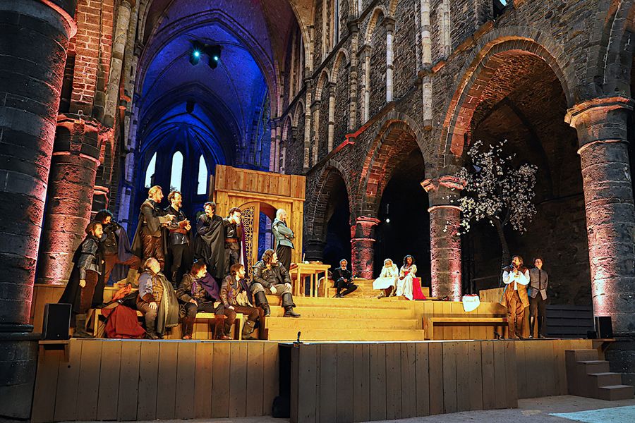 Nous aurons le plaisir de jouer ce spectacle plus de 70 fois, dans des espaces aussi différents que l’abbaye de Villers-la-Ville, le Théâtre Royal du Parc, l’Aula Magna à Louvain-la-Neuve, au Wolubilis à Bruxelles et dans le magnifique Théâtre de Liège. Les vingt acteurs de la distribution vont donc pouvoir prendre le temps d’accompagner leur personnage sur un long parcours, ce qui est malheureusement trop peu souvent le cas.