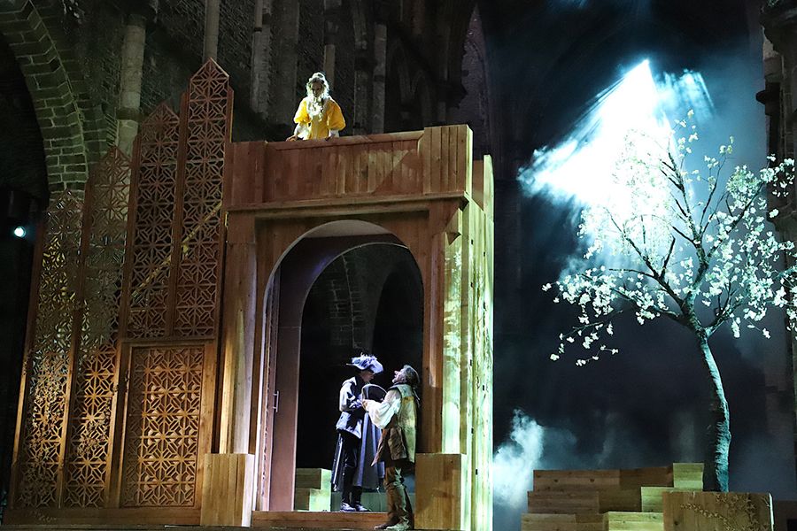 L’abbaye de Villers-la-Ville est un décor en soi qu’aucune scénographie ne pourrait effacer. Cela tombe bien avec une pièce comme Cyrano puisque la fin de l’histoire se déroule justement dans un couvent.